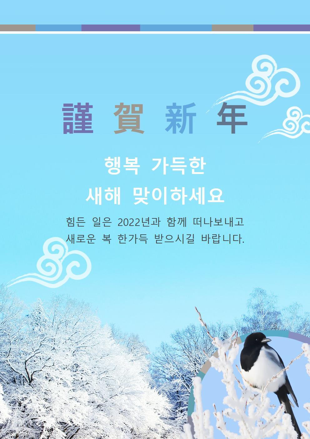 다사다난했던 2022년이 저물어 갑니다. 새해에 직접 찾아뵙지 못하고 문자로나마 이렇게 인사드리게 되었습니다. 2023년에도 늘 건강하시고 소원성취 만사형통 하십시오. 새해 복 많이 받으세요.