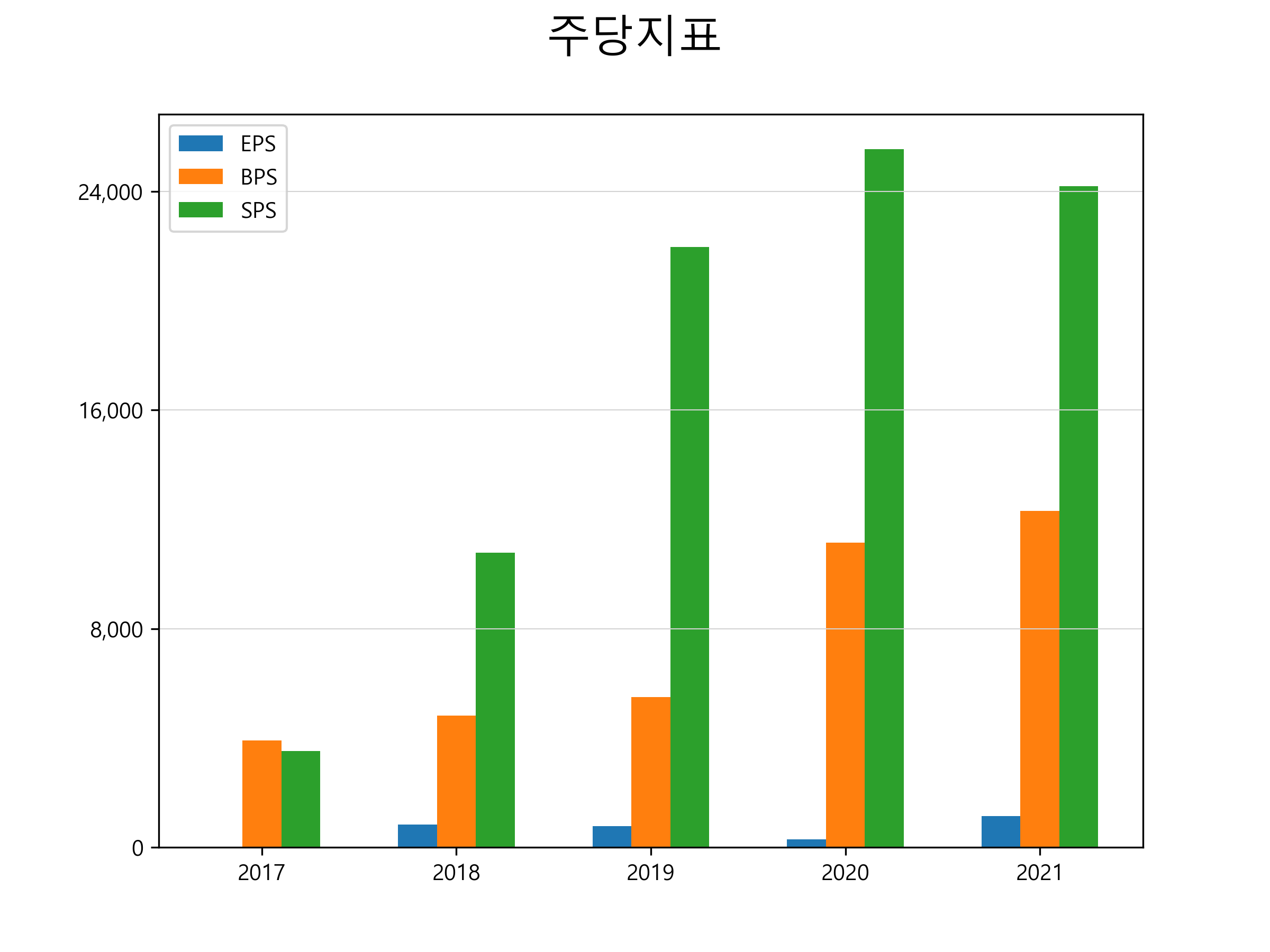 ※ EPS 주당 순이익, BPS 주당 순자산, CPS 주당 현금흐름, SPS 주당 매출액, PER 주가수익비율, PBR 주가순자산비율, PCR :주가현금비율, PSR 주가매출비율, DPS 주당배당금